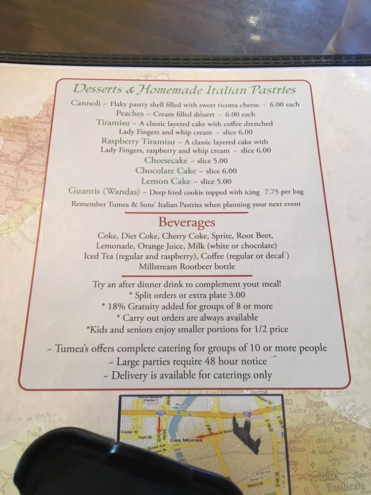 Tumea & Sons Restaurant, an authentic Italian eatery in Des Moines, IA, offers a menu filled with mouthwatering dishes and a cozy atmosphere. Customers rave about the friendly staff, quick service, and delicious food. With a variety of lunch options such as Cheese Stix, Chicken Salad, and Meatball Sandwich, there is something for everyone to enjoy. The reviews highlight the impeccable taste of dishes like Manicotti and Fettuccine Alfredo, showcasing the restaurant's commitment to quality and authenticity. The nostalgic decor adds to the charm of the dining experience, making Tumea & Sons a must-visit destination for Italian cuisine enthusiasts.