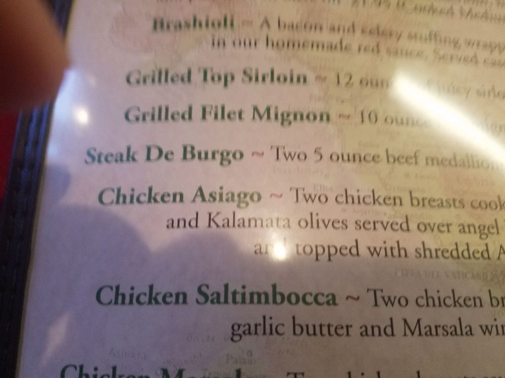 Veal stuffed with capicola, breaded and cooked in garlic butter, mushrooms and marsala wine sauce.